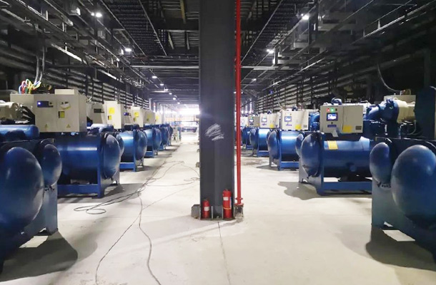 選用12臺單機制冷量210萬大卡磁懸浮冷水機組,2臺60萬大卡的熱泵。