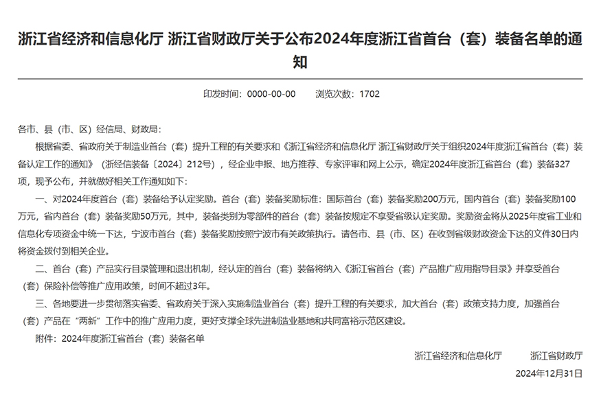 喜訊 | 青風(fēng)產(chǎn)品入選“2024年度浙江省首臺(套)裝備名單”